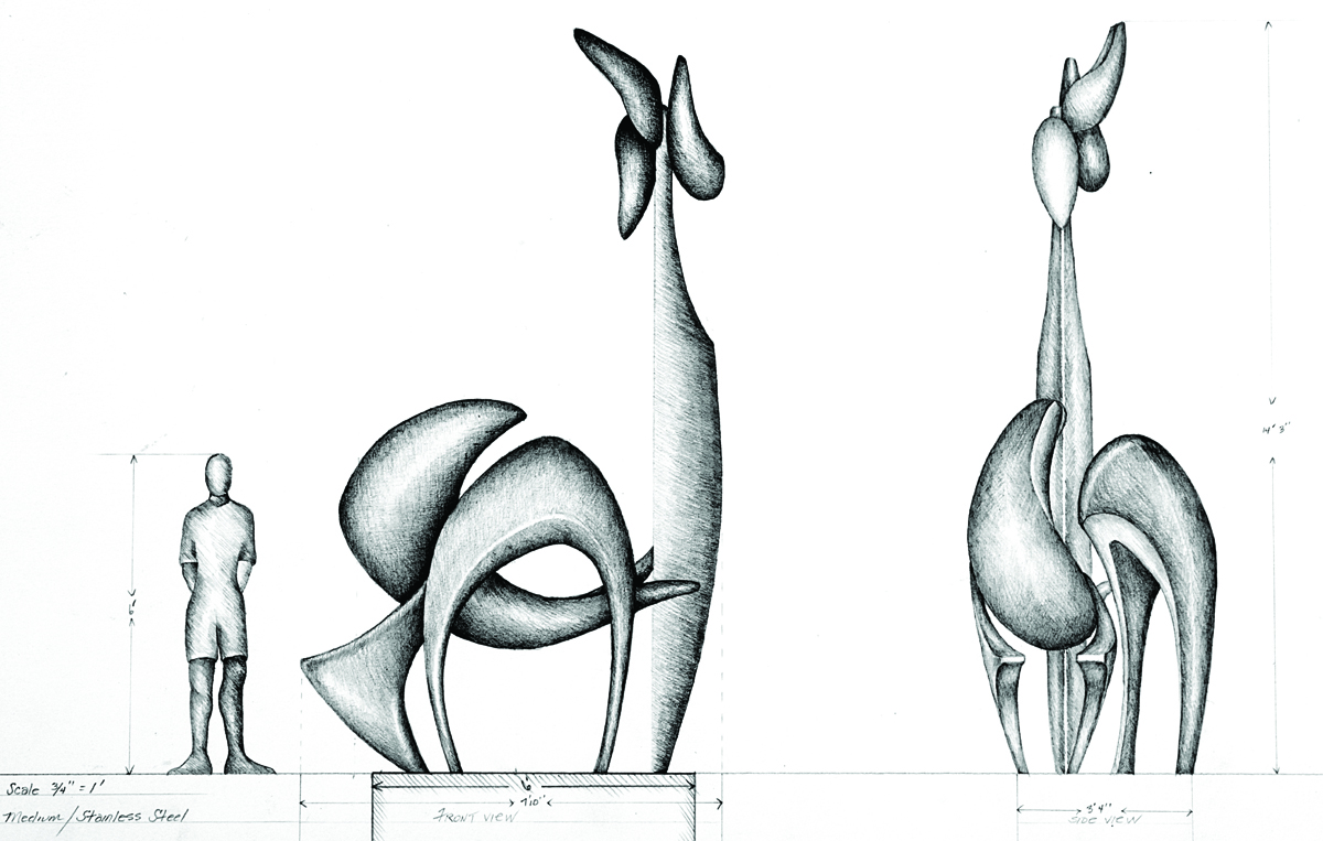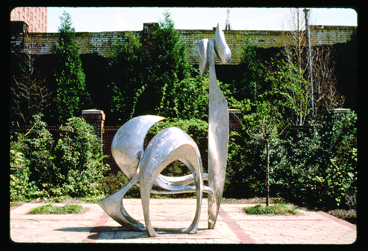 Public Art Commission for the Sweet Auburn Community, a historic neightborhood in Atlanta, Georgia Commissioned by the City of Atlanta Bureau of Cultural Affairs 14'h x 12'l x 7'd Stainless Steel 1995