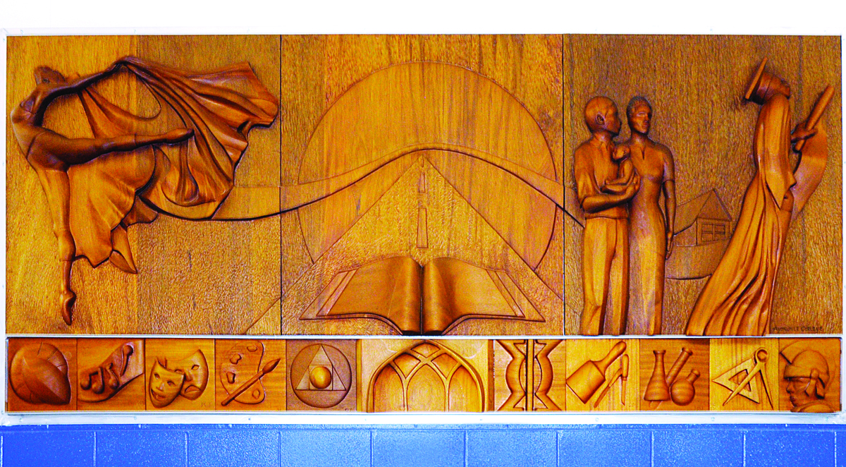 Public Art Commission for North Springs High School, Sandy Springs, Georgia Commisioned by the Fulton County Arts Council, Atlanta, Georgia 1999 Mahogany 5'h x 12'l